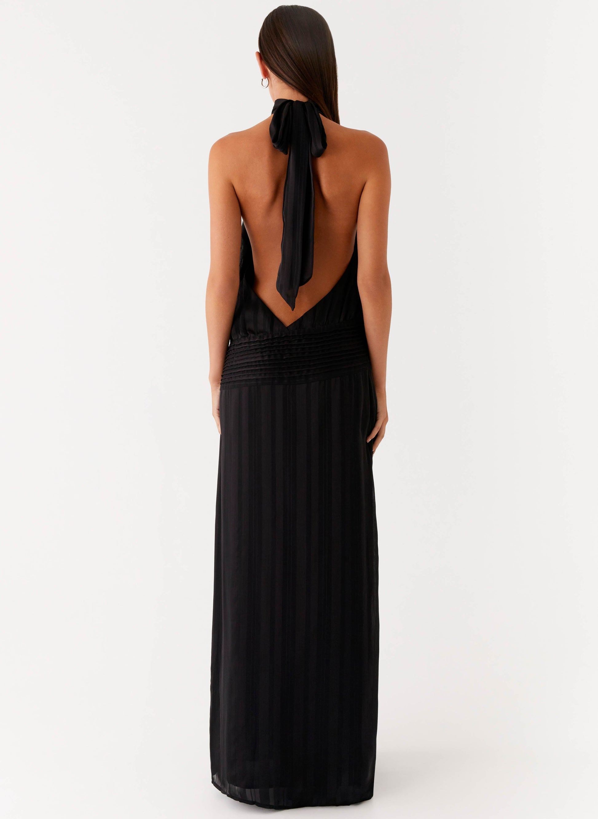 The Serena Halter Maxi Dress is made for moonlit moments and midnight escapes. Featuring a halter neckline with a thick neck tie strap and low back, this slip-on style is crafted from textured fabric that drapes beautifully over the body. Fully lined for a seamless finish, it's the ultimate statement for sunset soirées and after-dark events.